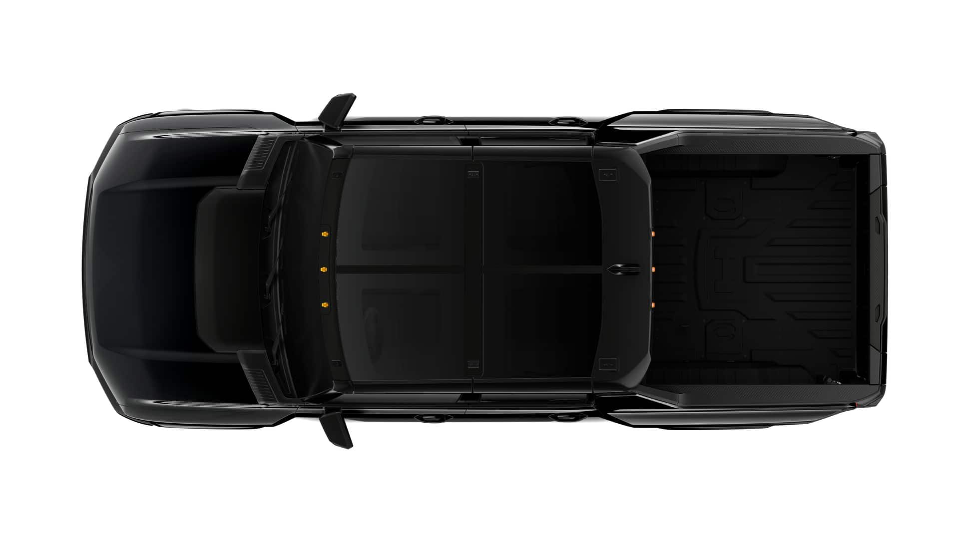 Nav System, Moonroof, Heated Seats, Rear Air, Panoramic Roof, 4x4, Bed Liner, Hitch, TRANSMISSION, NONE (ELECTRIC DRIVE UN... INFINITY ROOF, WITH REMOVABLE TRANSPA... Aluminum Wheels. Void Black exterior and Granite Drift interior