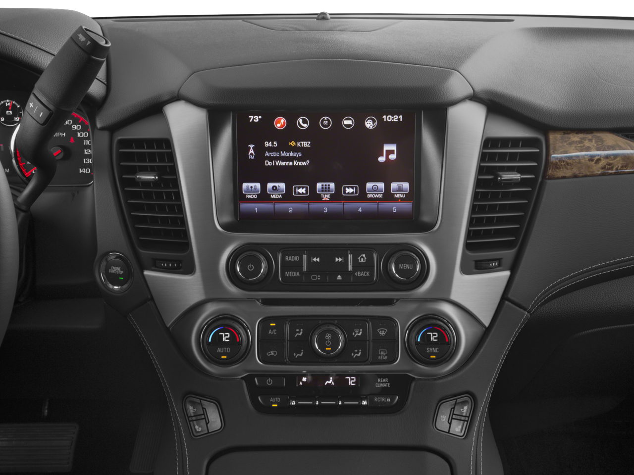 OPEN ROAD PACKAGE, (CF5) power sunroof, (U42) rear seat entertainment system and on SLT (IO6) Audio system with navigation, WHEELS, 22" X 8.5" (55.9 CM X 21.6 CM) ULTRA-BRIGHT ALUMINUM with Midnight Silver premium paint, ENTERTAINMENT SYSTEM, REAR SEAT BLU-RAY/DVD with remote control, overhead display, Wi-Fi wireless projection capability, two 2-channel wireless digital headphones, auxiliary HDMI/MHL audio/video input and 2 USB ports, AUDIO SYSTEM, 8" DIAGONAL COLOR TOUCH SCREEN NAVIGATION WITH INTELLILINK AM/FM/SiriusXM stereo with seek-and-scan and digital clock, includes Bluetooth® streaming audio for music and select phones; voice-activated technology for radio and phone; and Shop with the ability to browse, select and install apps to your vehicle. You can customize your content with audio, weather and more. Featuring Apple CarPlay® and Android Auto® capability for compatible phone; 5 USB ports and 1 auxiliary jack (STD), ENGINE, 6.2L ECOTEC3 V8 with Active Fuel Management, Direct Injection and Variable Valve Timing, includes aluminum block construction (420 hp [313 kW] @ 5600 rpm, 460 lb-ft of torque [624 N-m] @ 4100 rpm) (STD), TRANSMISSION, 8-SPEED AUTOMATIC electronically controlled with overdrive, tow/haul mode and tap up/tap down shifting (STD).